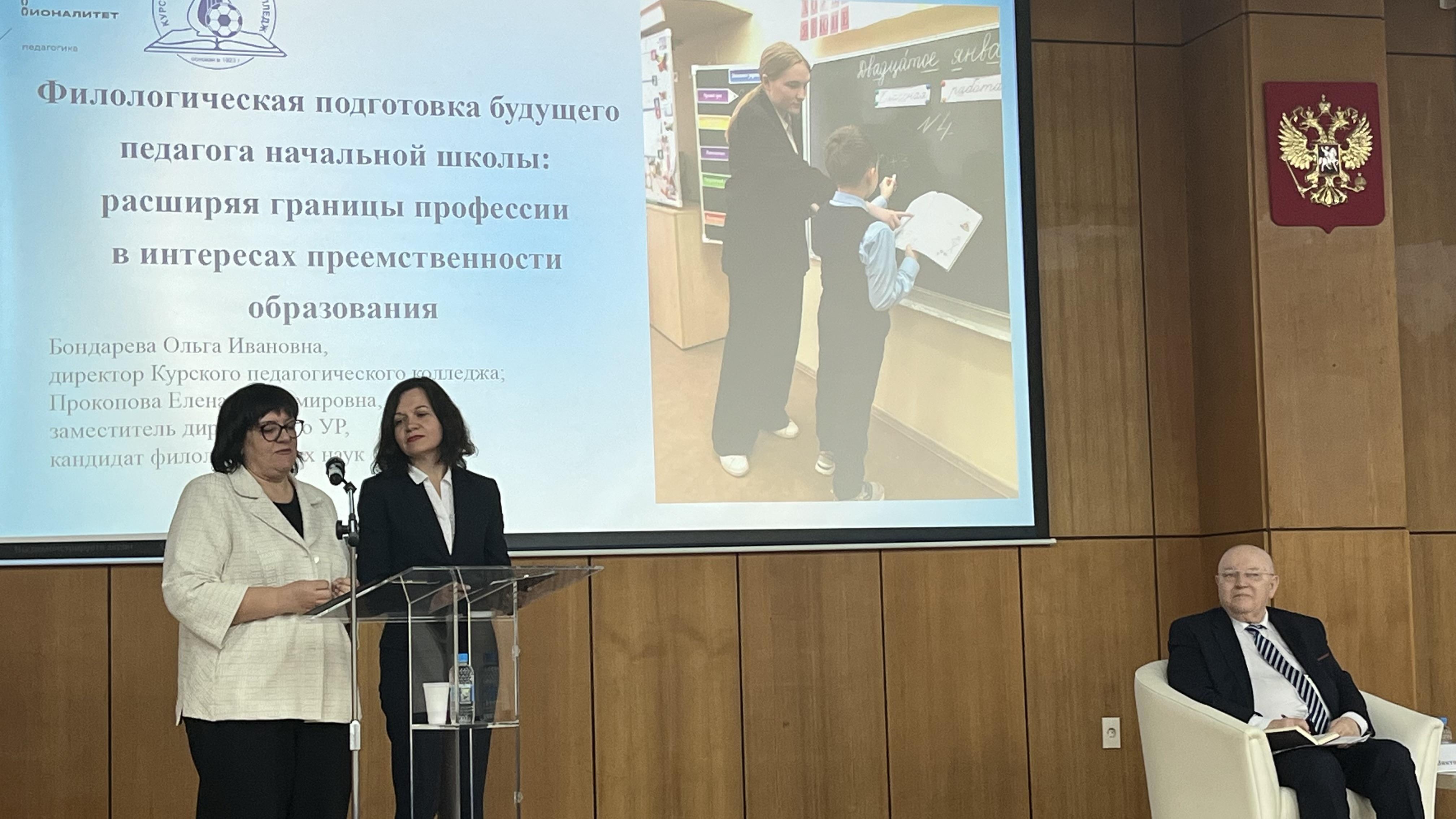 Директор Курского педагогического колледжа Ольга Бондарева и заместитель директора по учебной работе Елена Прокопова подняли важную тему филологической подготовки и предложили возродить успешную практику прошлого — подготовку учителей начальных классов с правом преподавания русского языка в основной школе, что позволит обеспечить мягкий переход детей и закрыть кадровые дефициты в сельской местности.